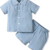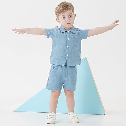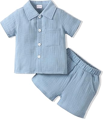 - Stylish Design–Cute baby boy outfits with classic collar, cute and fashion to wear. Wide elastic waistband short pants, neither tight nor loose, suitable for indoor or outdoor activities. Your little boy deserve to own one!