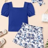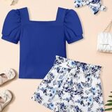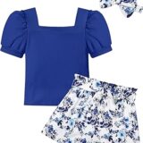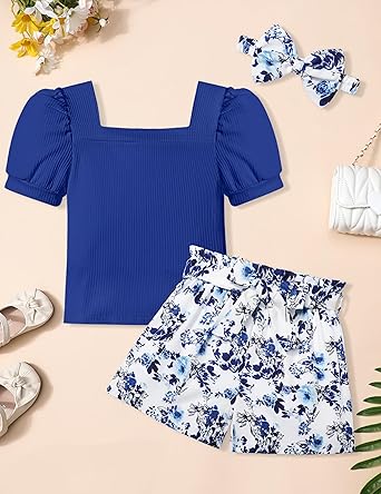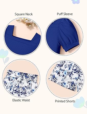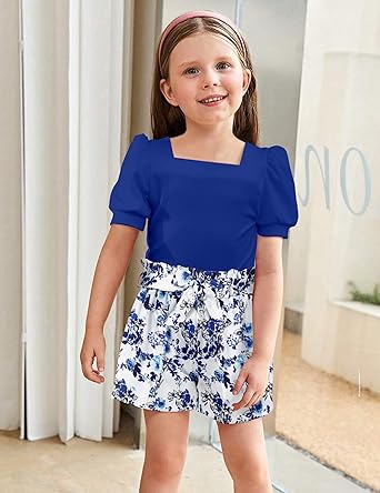 - Stylish and Comfortable Design】This girls clothes features a trendy square neckline and short puff sleeves, offering a chic yet comfortable look for girls aged 2-12. The ribbed texture adds a touch of elegance, making it perfect for summer outings.