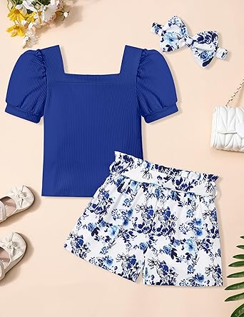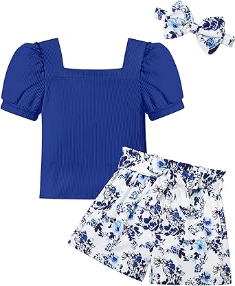- Versatile and Functional】The toddler girl clothes includes a solid-colored top paired with floral-print shorts, creating a versatile outfit suitable for various occasions. The paperbag waist design with adjustable drawstrings ensures a perfect fit, while the pockets add practicality for little girls.