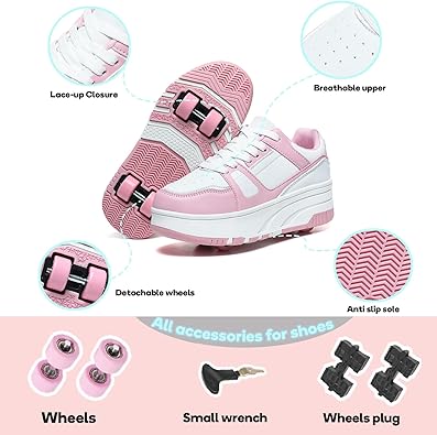• Freely removable wheels:Easy to use, the wheels are freely removable, need to put on the wheels to slide. Immediately disassembled when not needed, it is an ordinary pair of sports shoes.
