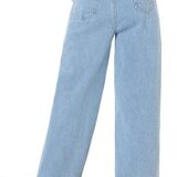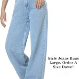 - Wide Leg Jeans: Loose and stylish wide leg jeans have an elasticated waistband. The high waisted and relax fit design is suitable for girls of all body types. Denim pants have a straight leg and long length that adds a sense of aesthetic appeal