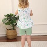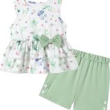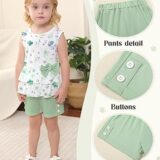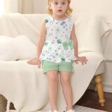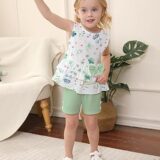 - Comfortable fit: The sleeveless design ensures breathability and comfort, making it ideal for summer wear. Paired with soft pink shorts, the outfit offers a harmonious color combination. The slightly flared hem adds a touch of grace and movement, perfect for active little ones.