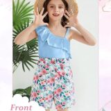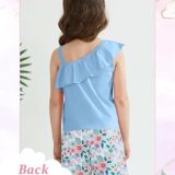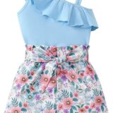 - Cute Design Element: The tank top boasts a simple solid color, a delicate ruffle neckline and one-shoudler design, adding a touch of elegance and fashion to the outfit, while the shorts come with an elastic waistband for a snug yet flexible fit. A cute bow detail adds a touch of sweetness, making it ideal for birthdays, parties, or special events.